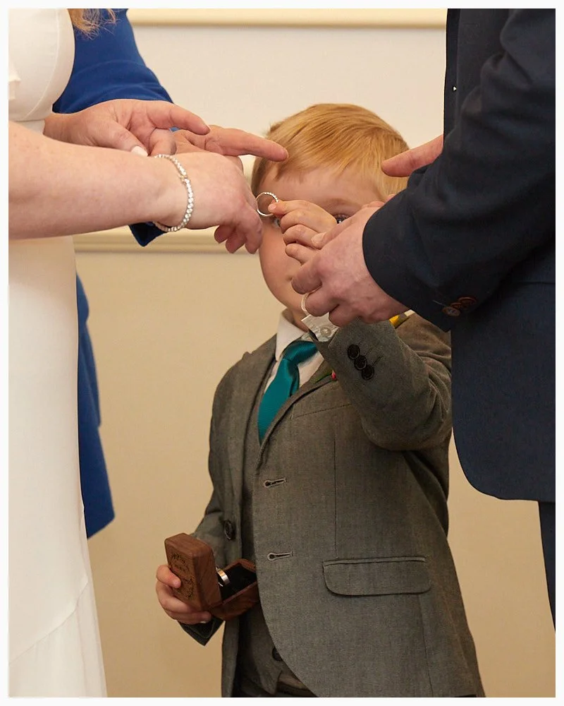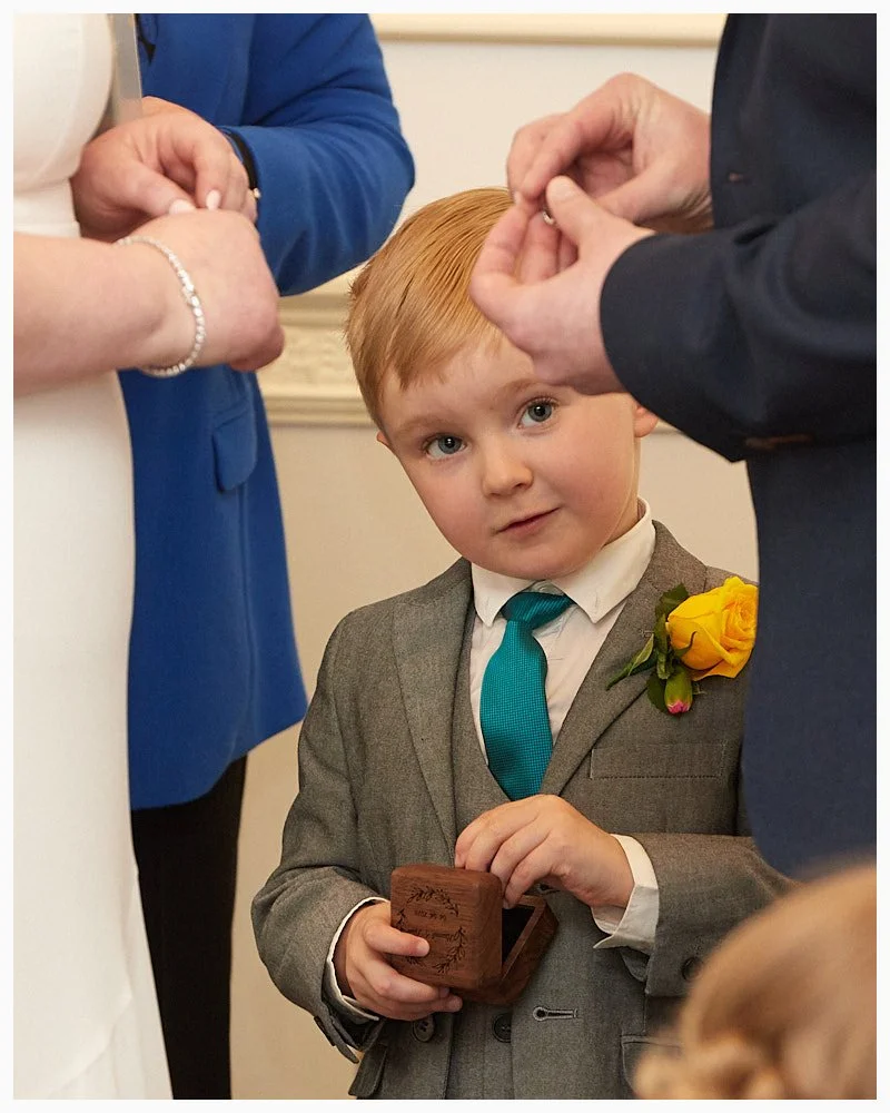 Pageboy holds the wedding rings ready for this part of the ceremony at Goldings Basingstoke Registry Office