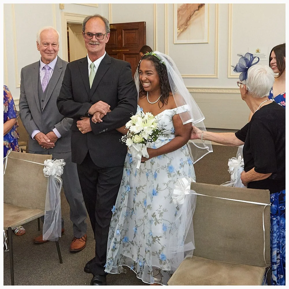 Bride enters the Carnarvon Room with her dad at the start of the wedding