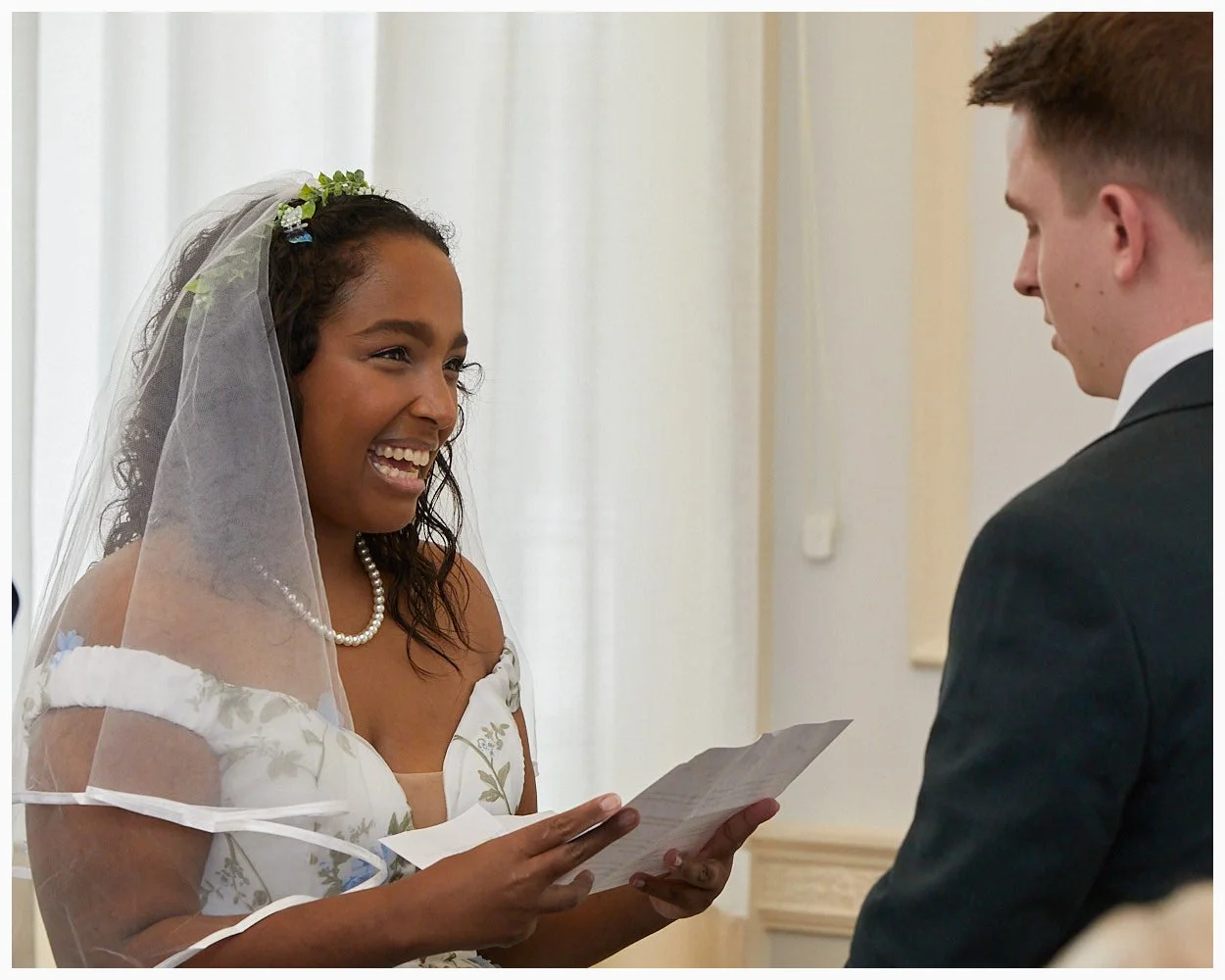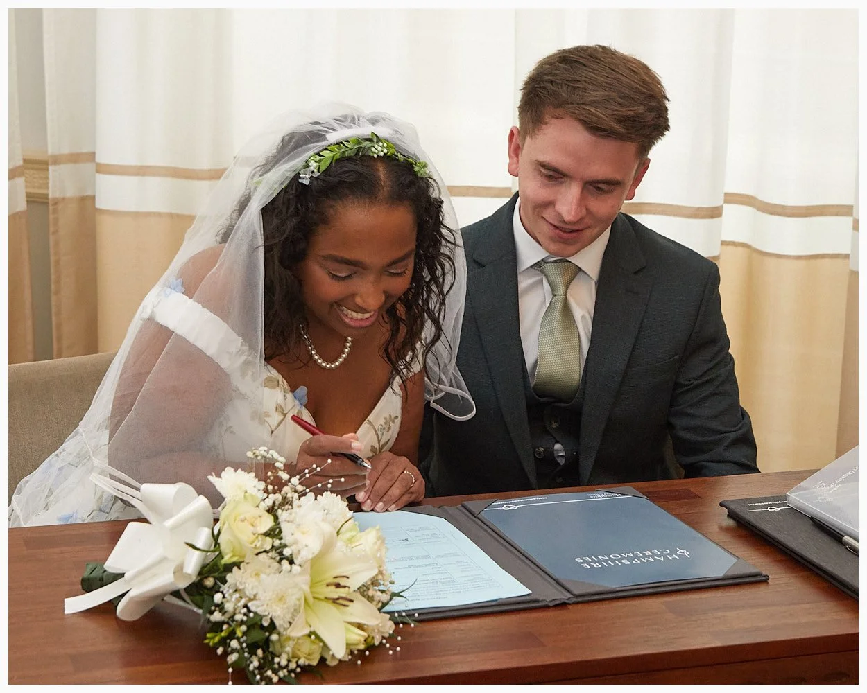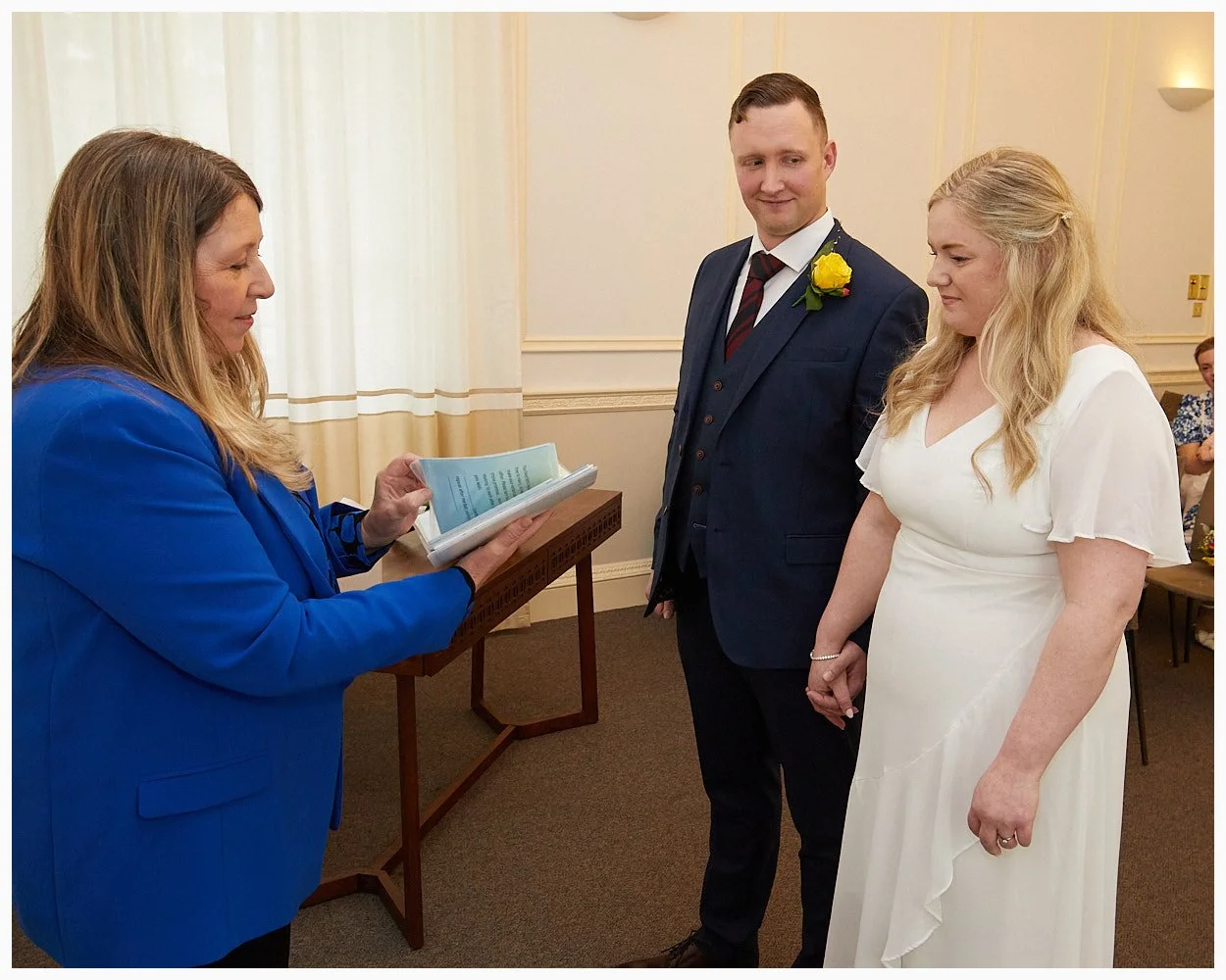 Registrar presents the marriage schedule to the bride and groom at Goldings Basingstoke Registry Office