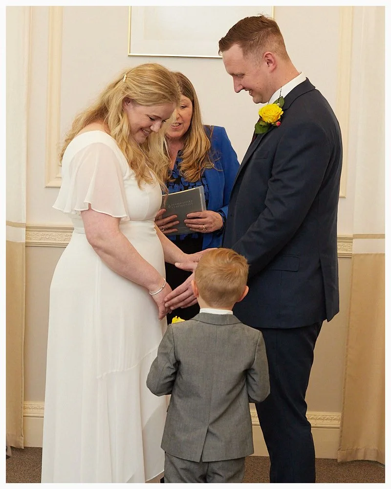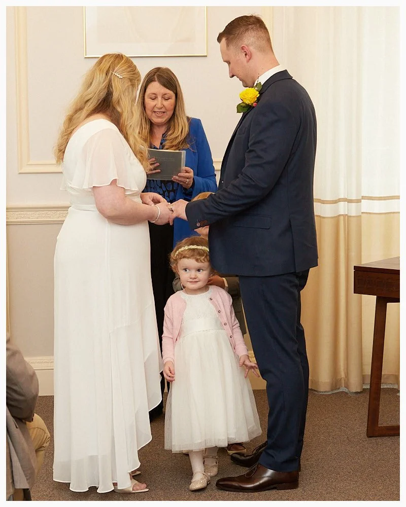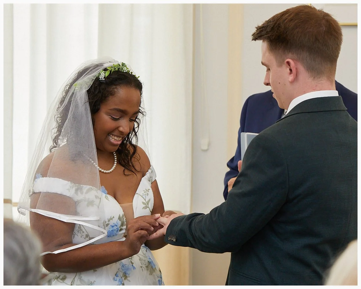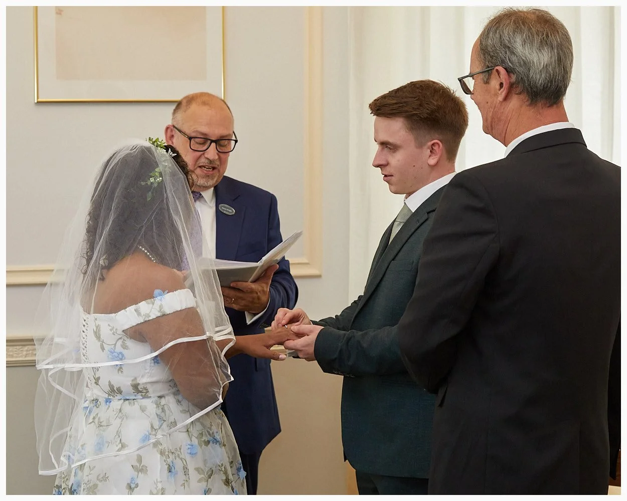 Ring exchange during the marriage ceremony at Basingstoke Register Office