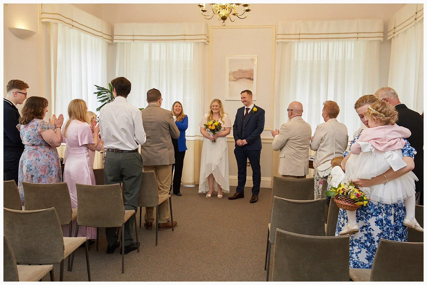 This bride and groom chose the larger of the two ceremony rooms called the Wellesley Room for their wedding at Basingstoke Register Office.