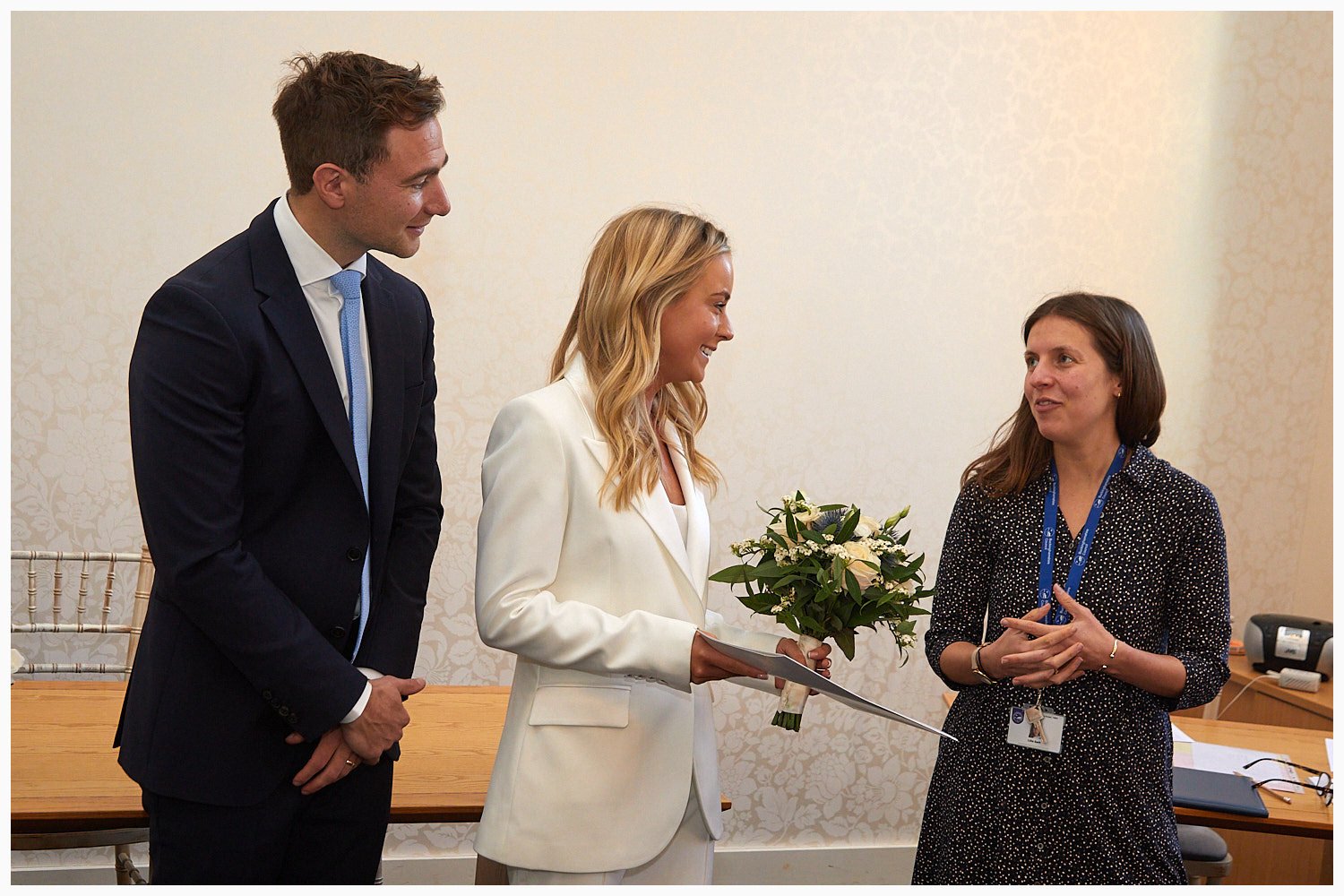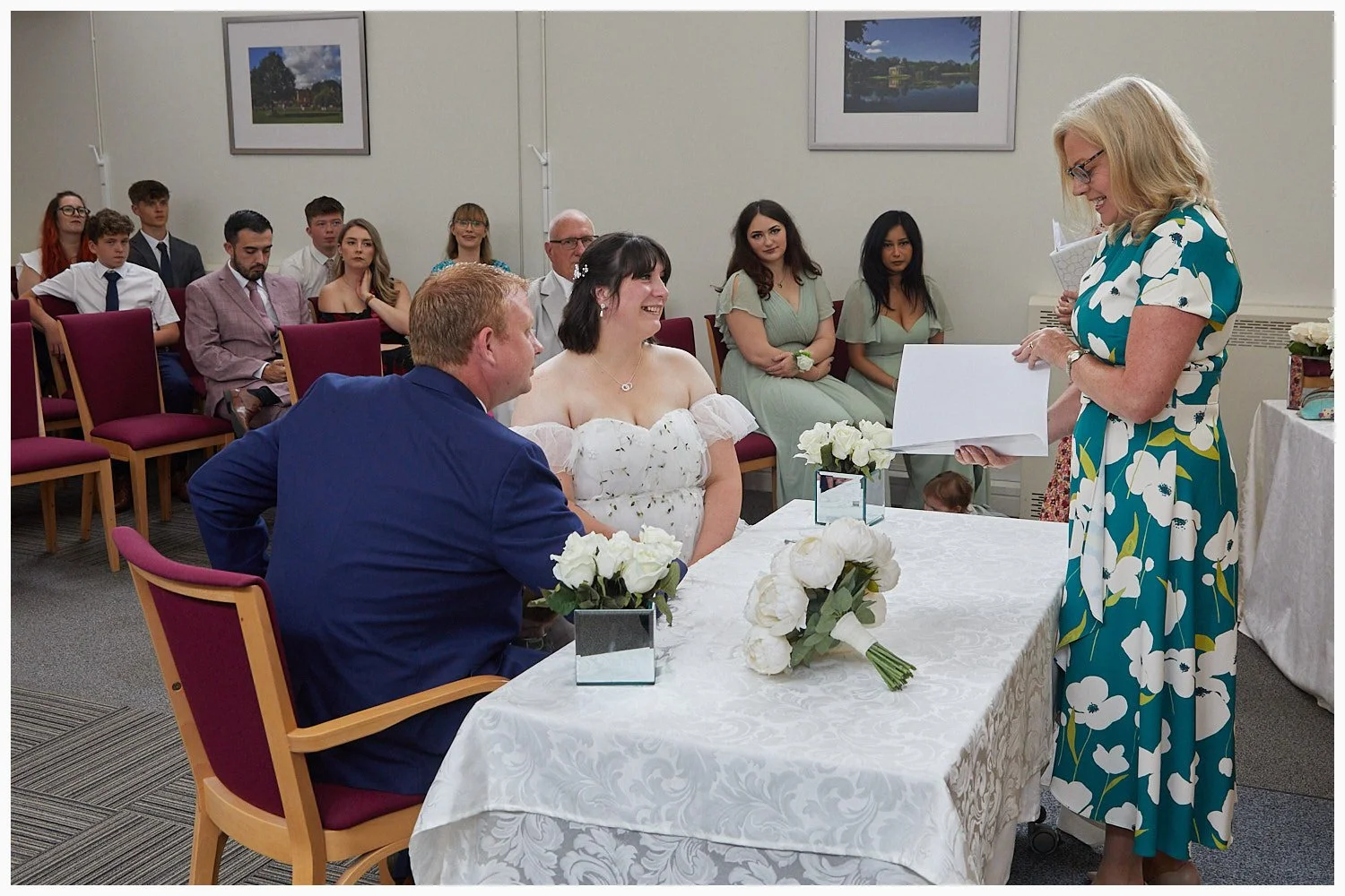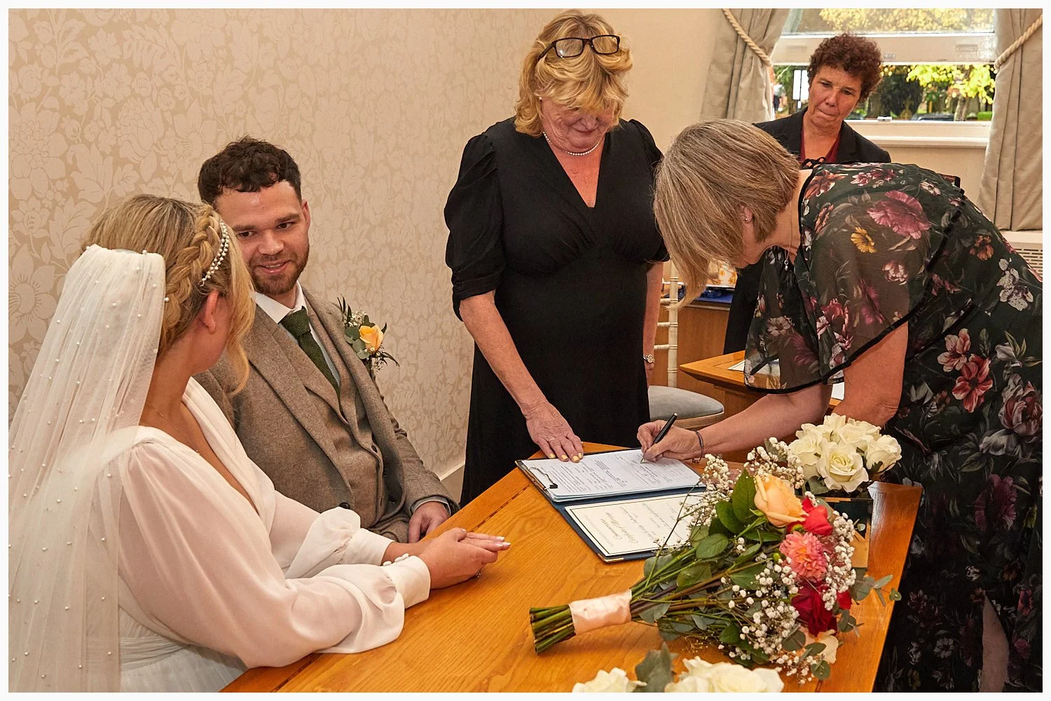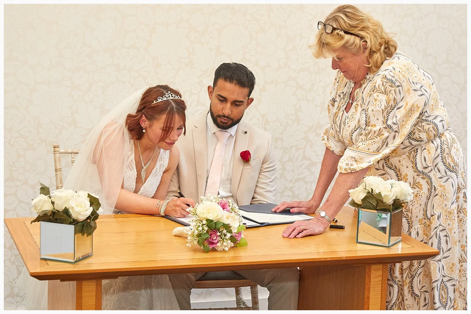 The Beaconsfield Registry Office staff present the marriage schedule to the bride and groom at the end of their wedding ceremony