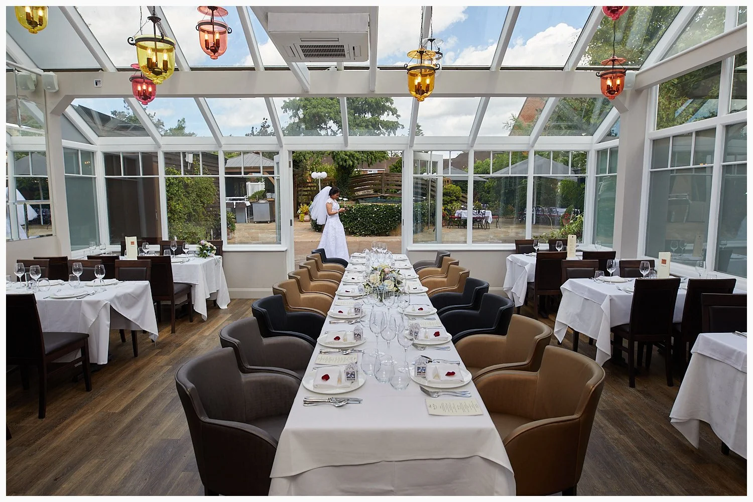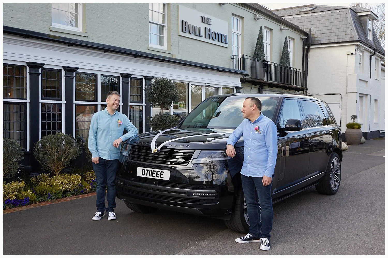 The couple used a very posh black Range Rover as their wedding car. The reception was at The Bull Hotel in Gerrards Cross. The gardens at the hotel are very extensive and beautiful