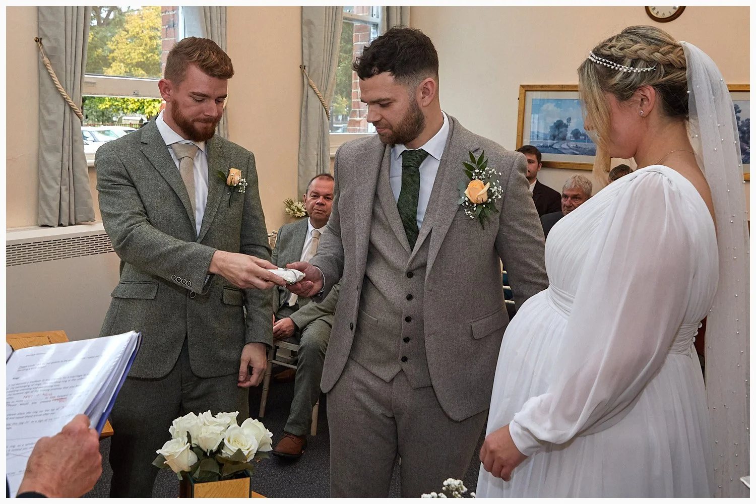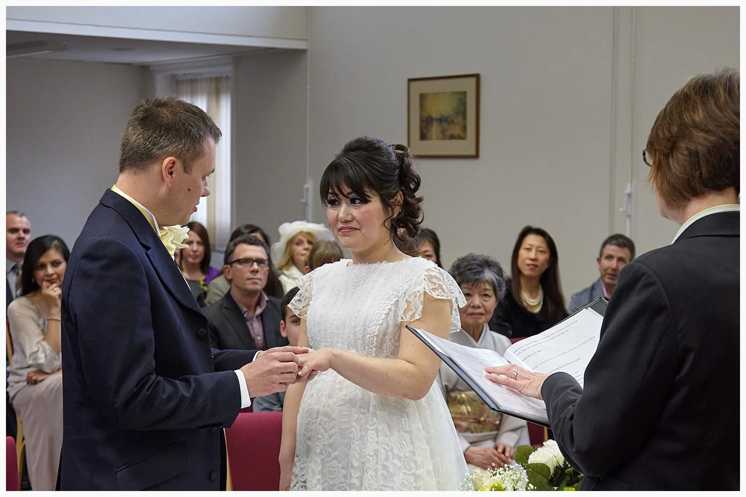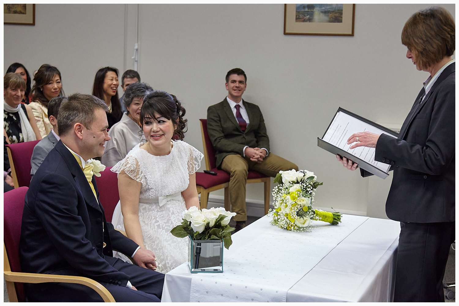 Wedding ceremony in progress in Midsomer Court Beaconsfield Registry Office