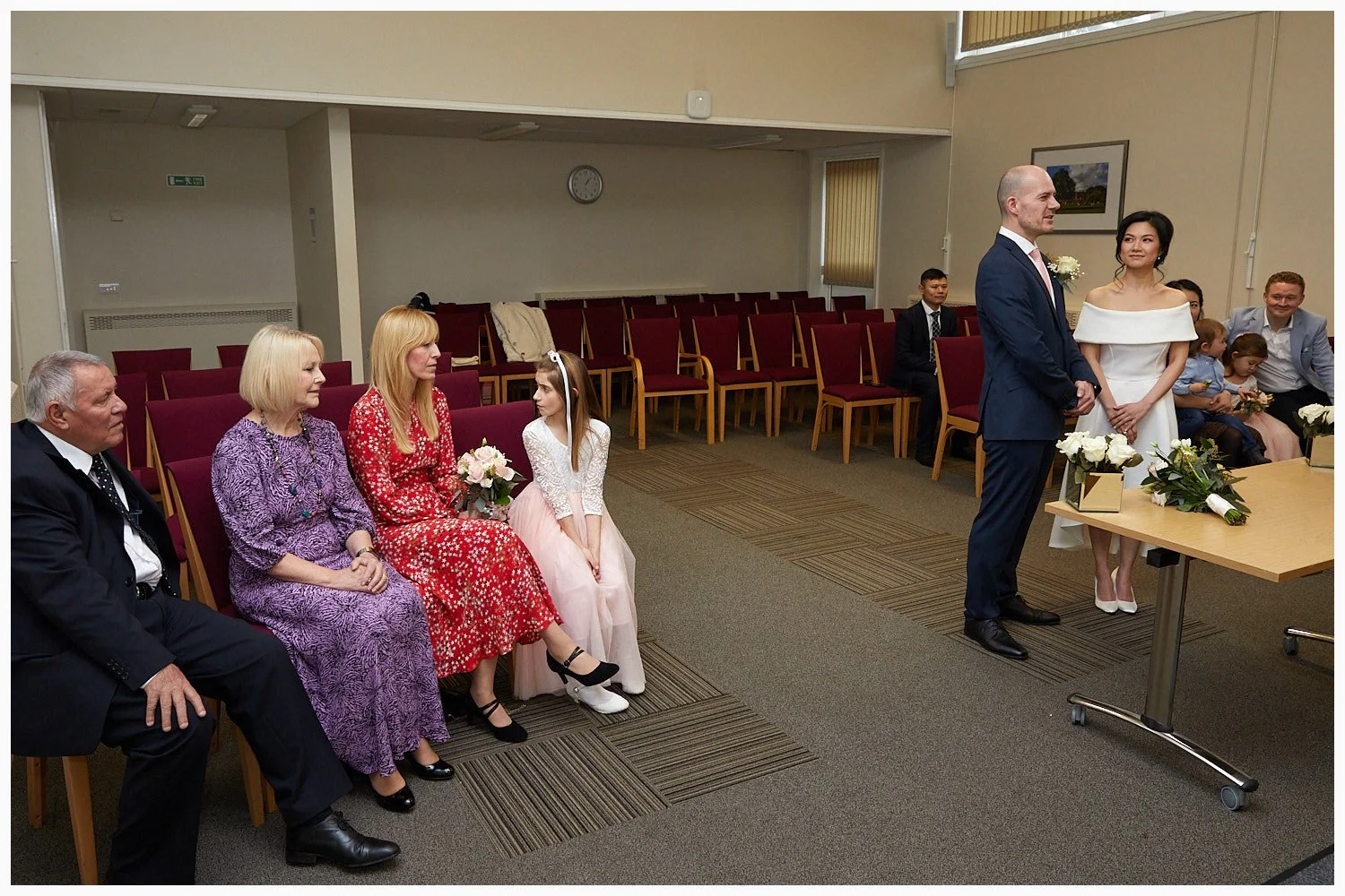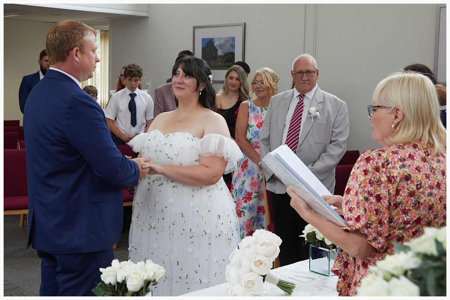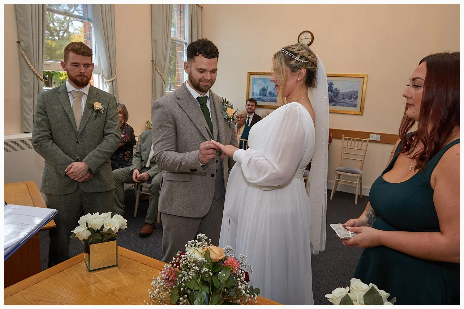 Wedding ceremony in progress in Midsomer Court Beaconsfield Registry Office