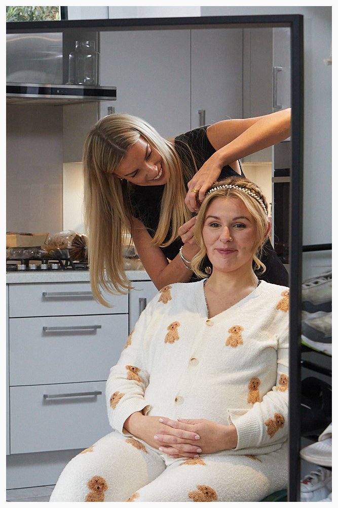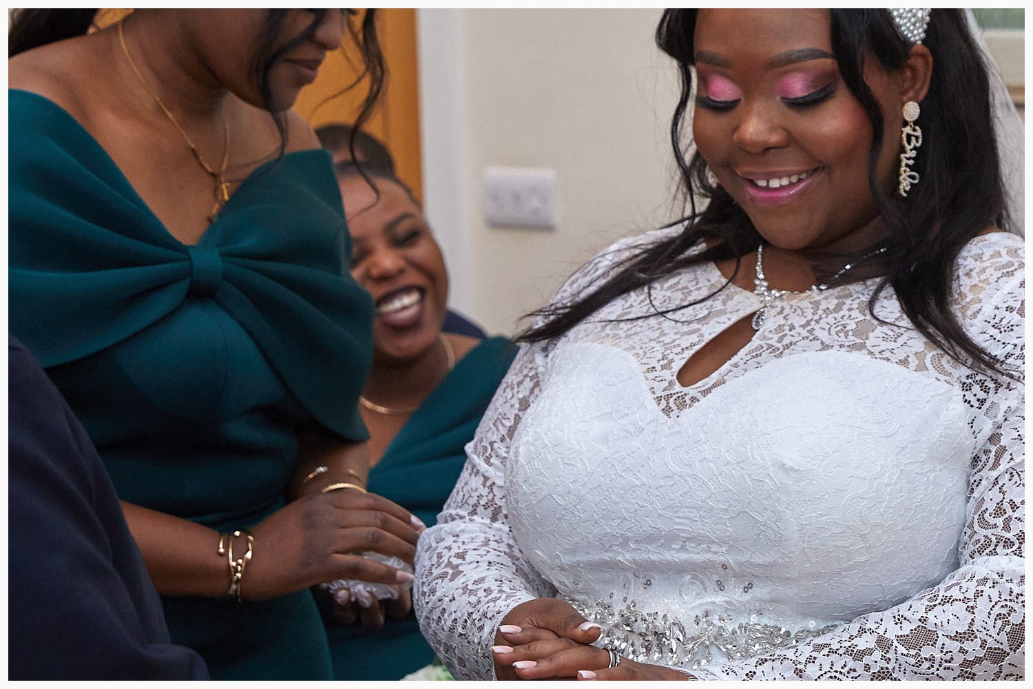 Bride and the girls getting ready before her wedding at Beaconsfield Registry Office. The brides garter included!