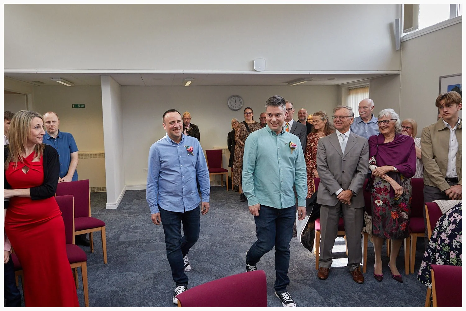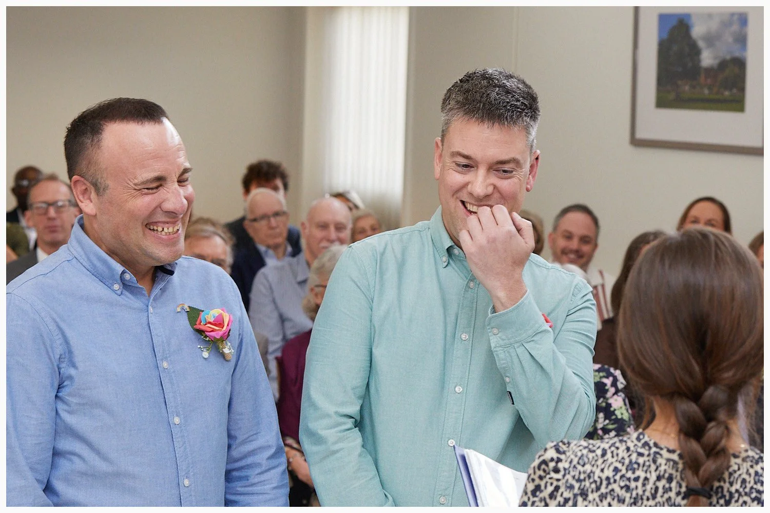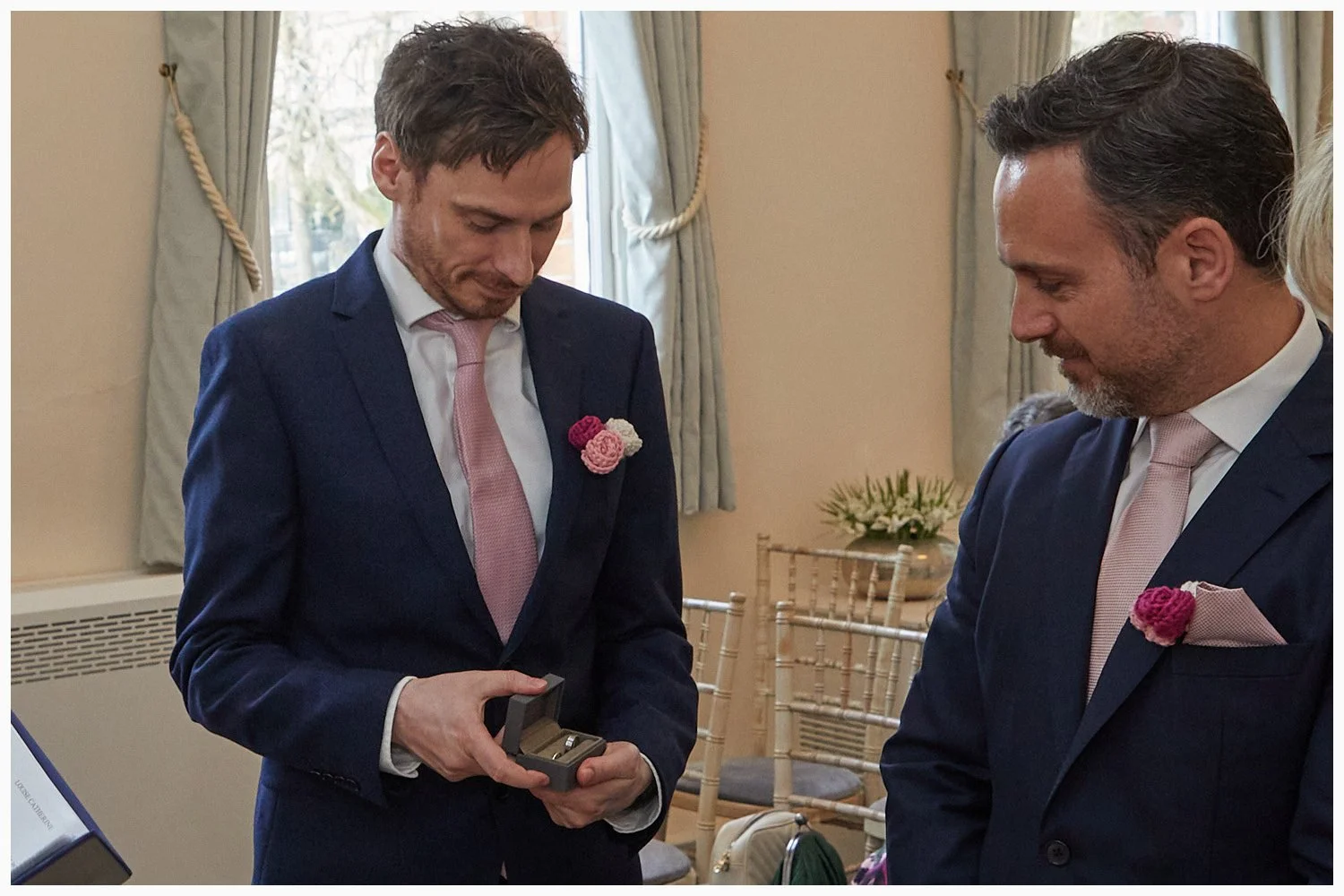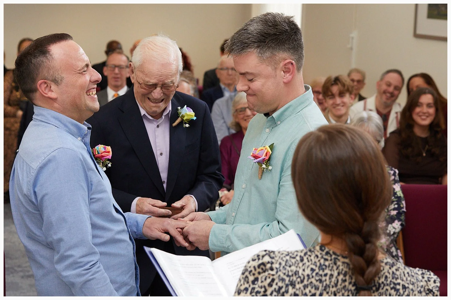 A gay wedding ceremony in progress in Midsomer Court Beaconsfield Registry Office