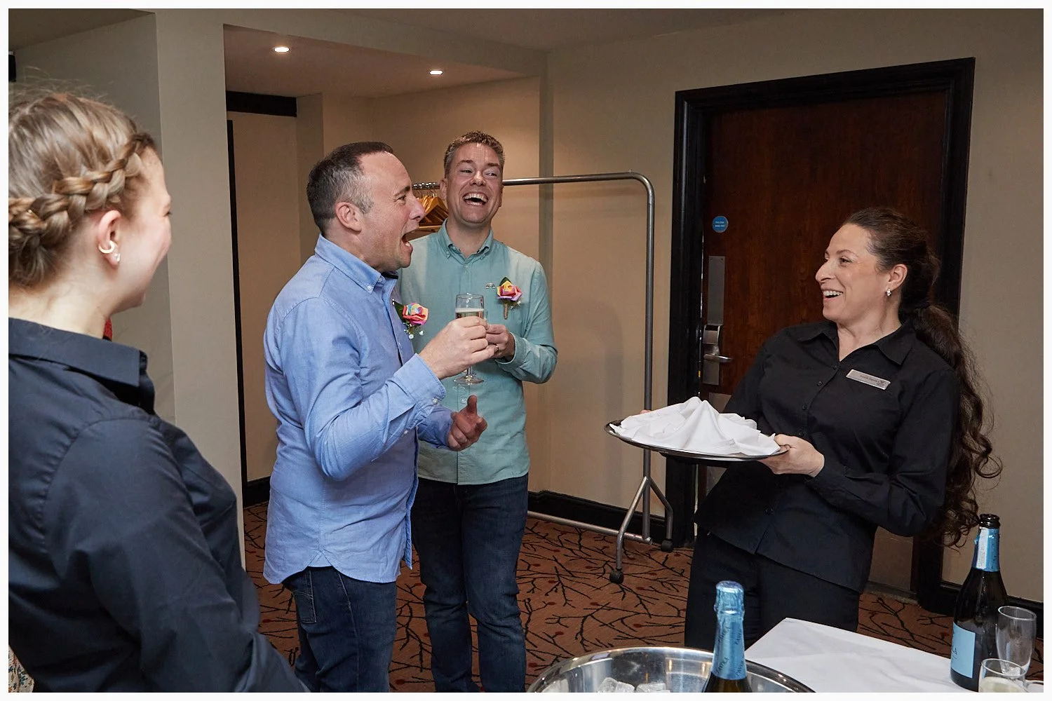 The bride and her guests congregated at the Crazy Bear Hotel in Beaconsfield before the start of the wedding ceremony in the Disraeli Room at the Registry Office