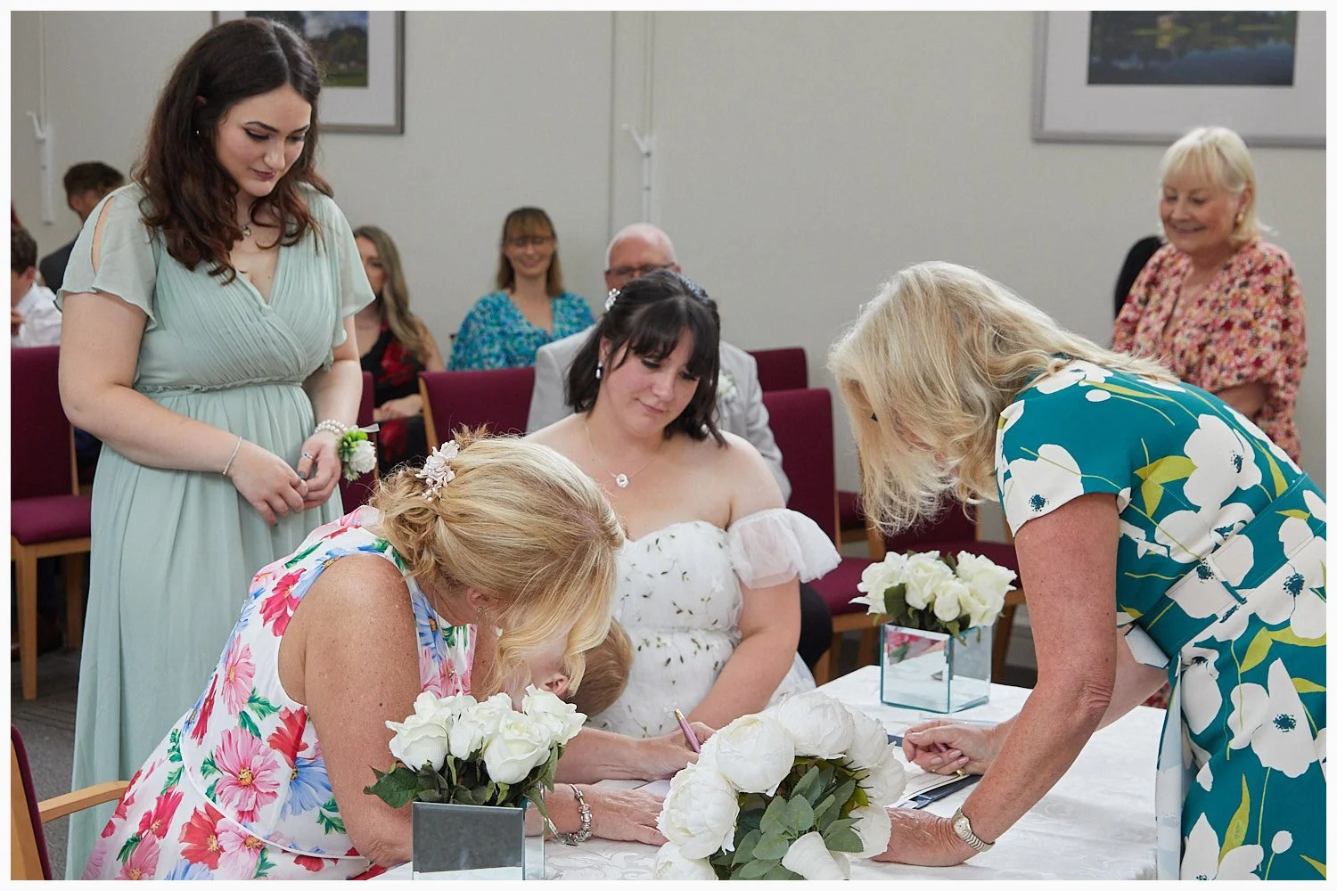 Guest signs the marriage schedule as one of the two witness who are required at Beaconsfield Registry Office