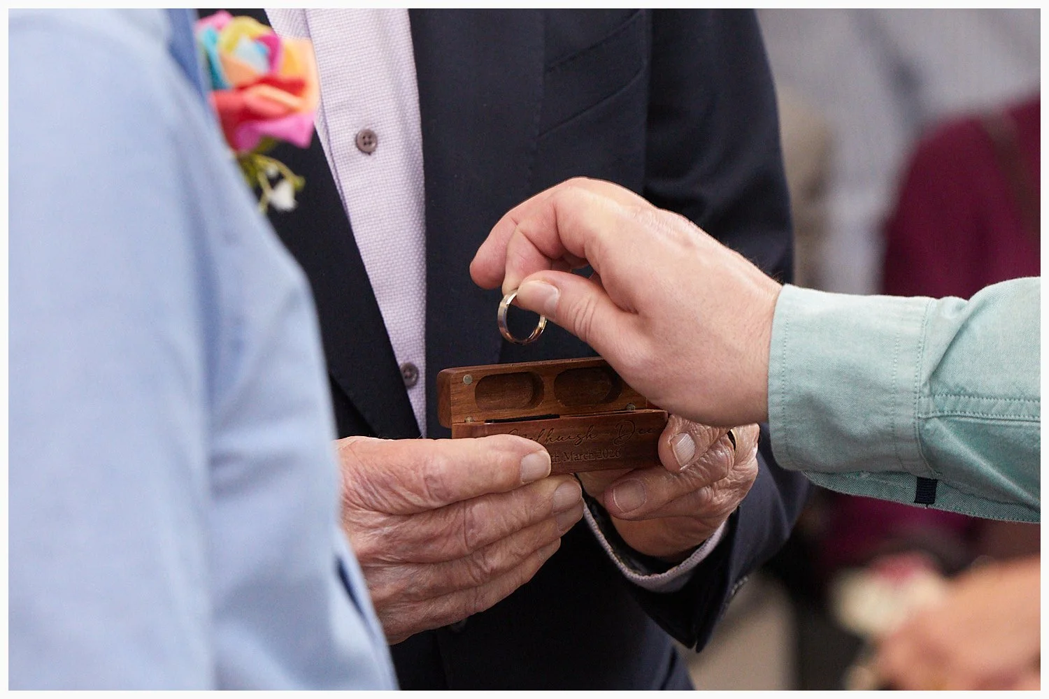 Guest presents the brides wedding ring during the ceremony