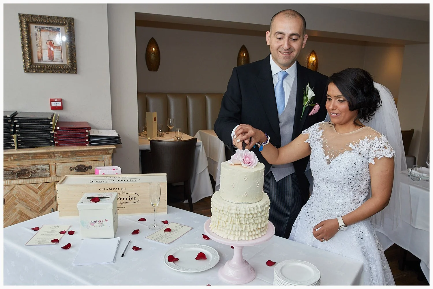 This bride and groom chose the popular Royal Saracens Head Hotel Beaconsfield for their wedding reception and wedding breakfast. I have shot receptions here several times. It is just a two minute walk from the Registry Office.