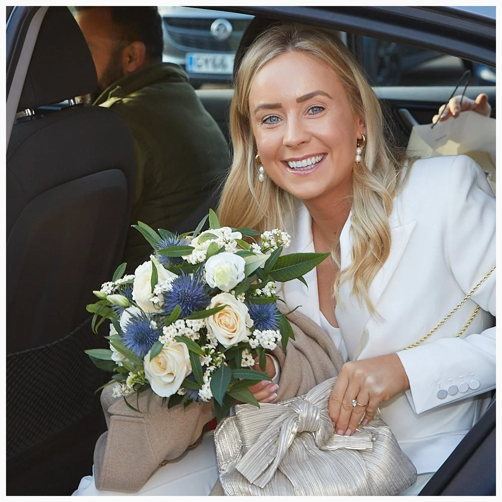 Bride arrives in her wedding car ready for her wedding at Beaconsfield Registry Office