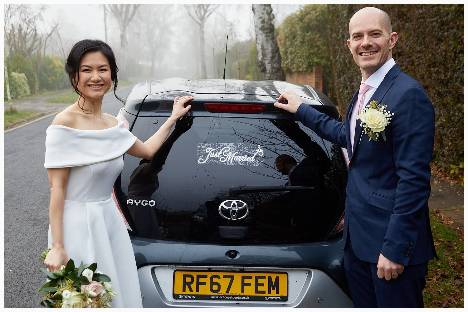 Bride and groom arrive for their wedding ceremony at Beaconsfield Registry Office
